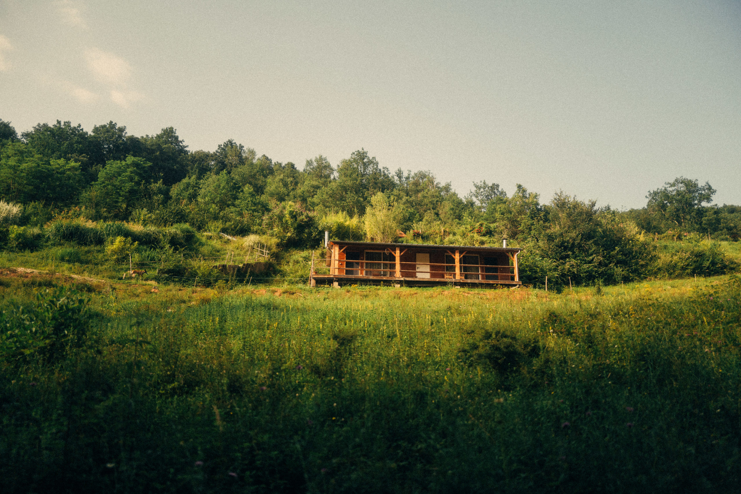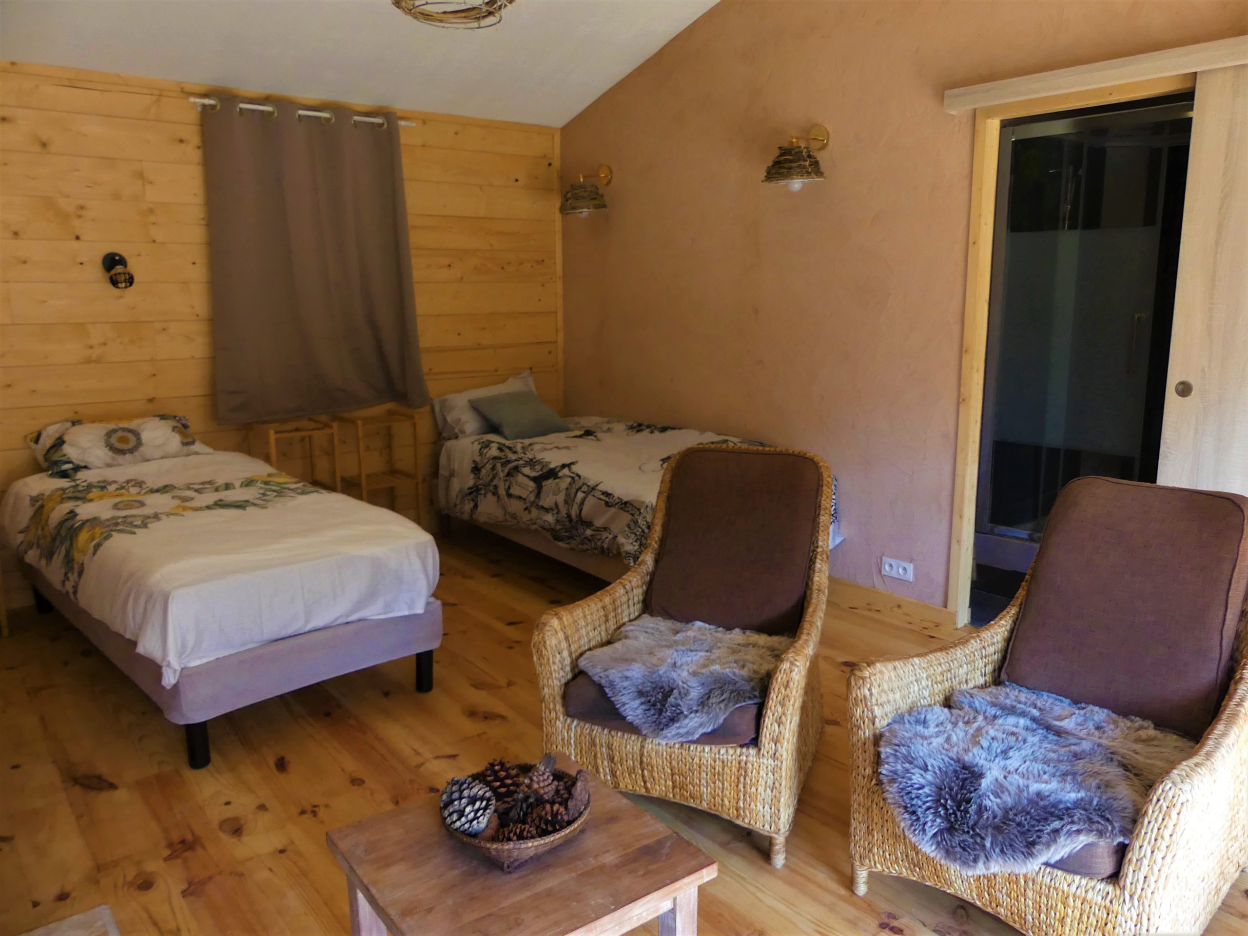 Tout le charme de cette chambre aux murs en terre et bois,proche du ruisseau et de la forêt