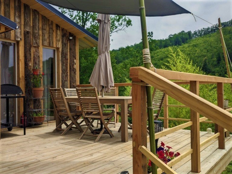 Construit sur pilotis vous offre une atmosphère chaleureuse et lumineuse. Sa terrasse en bois de 30 m² vous invite à profiter d’une vue imprenable sur les collines environnantes.