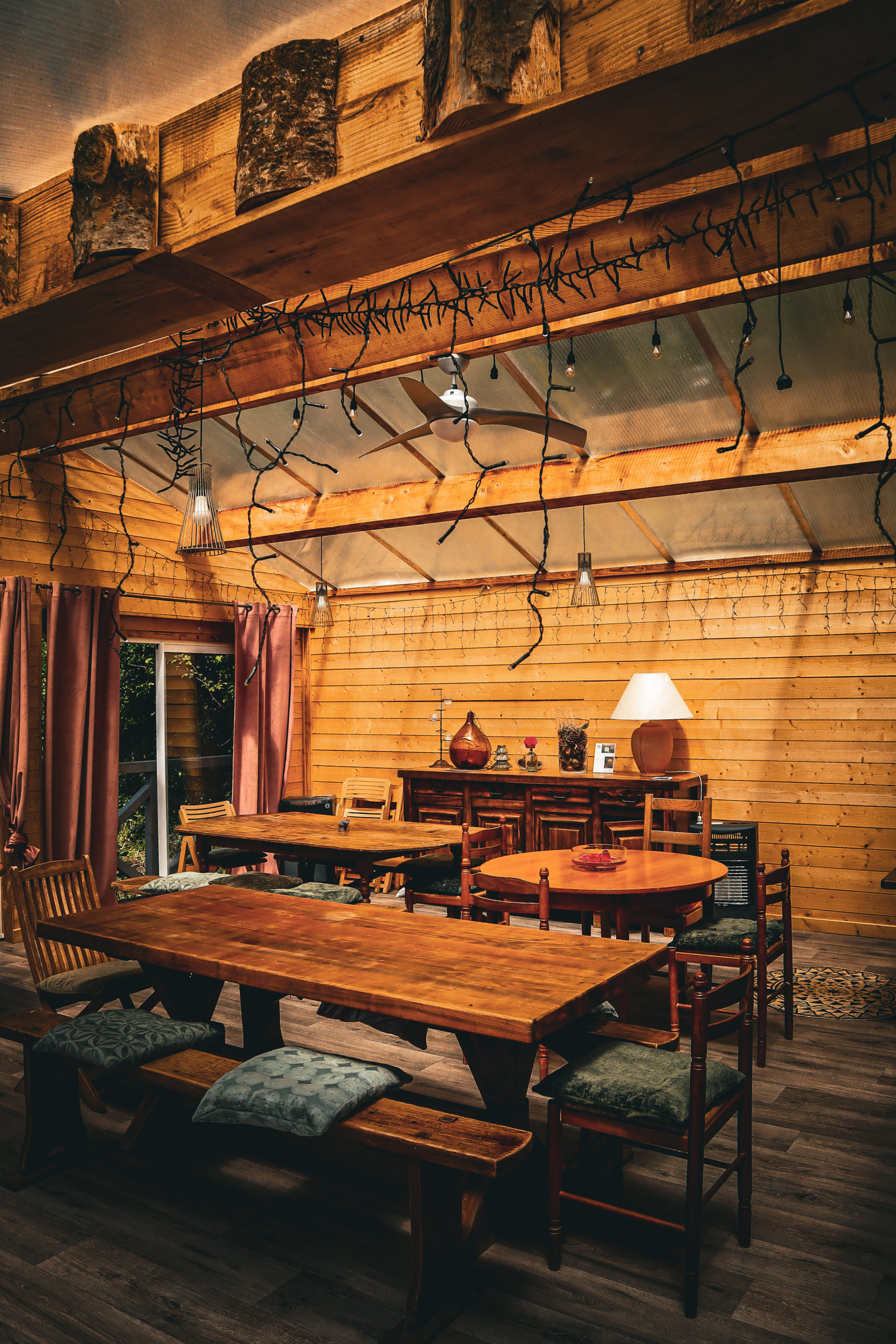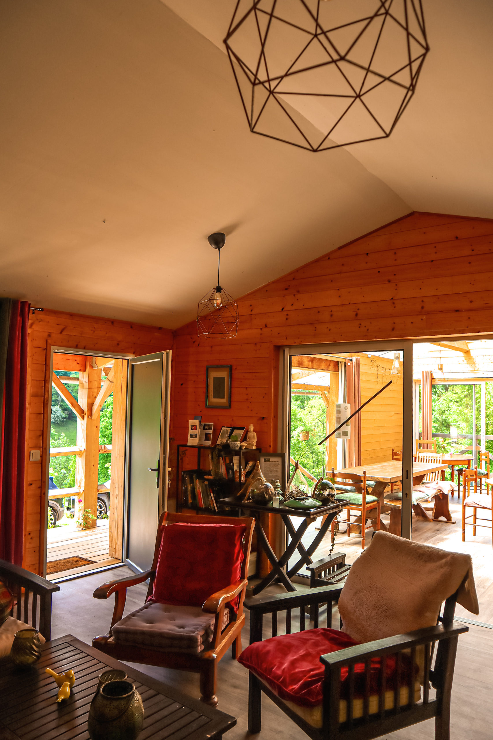 Cette salle possède un plancher de châtaigné massif, un plafond en bouleau, pour un confort naturel