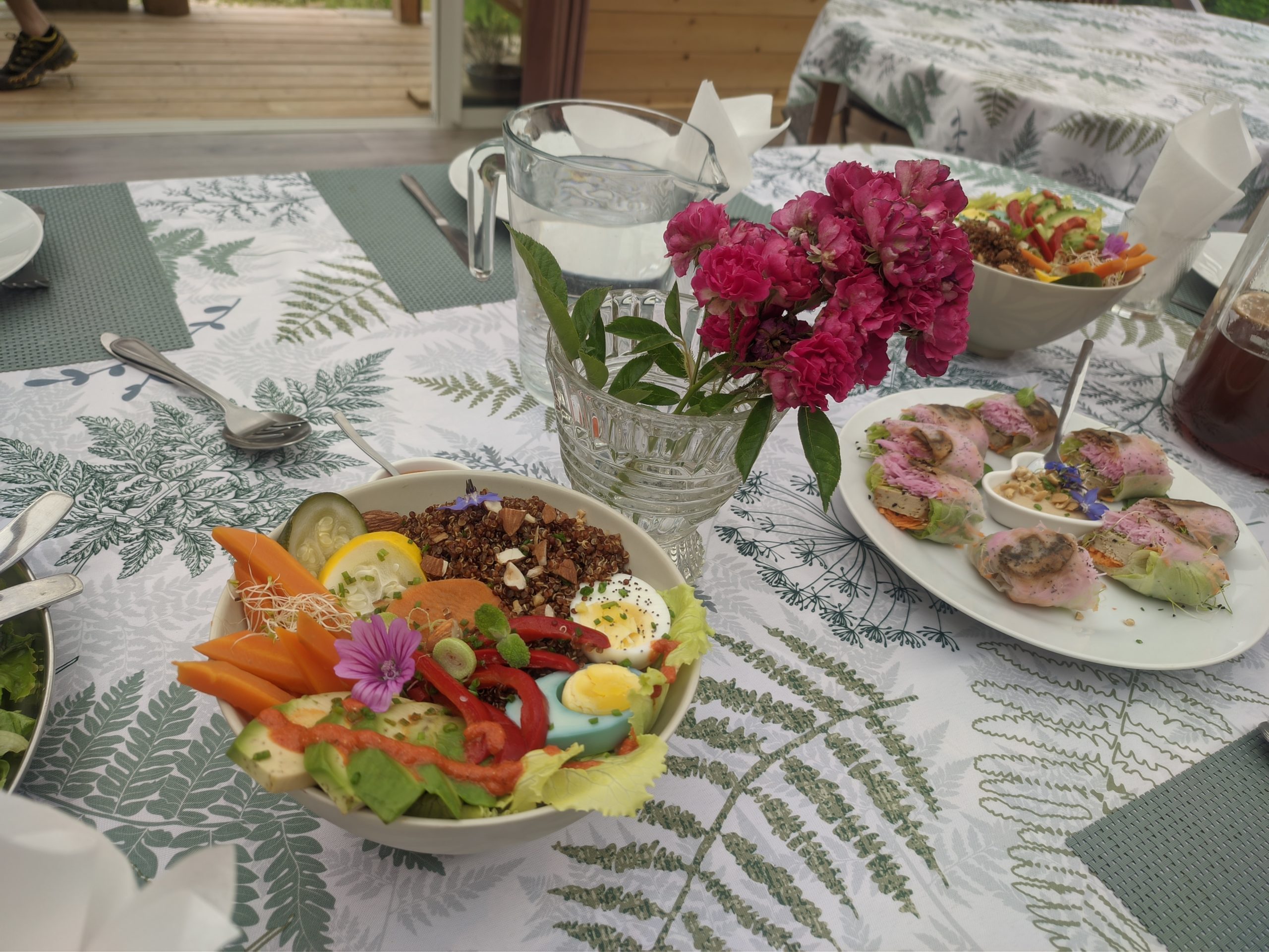 Lors de votre séjour en chambre d’hôte, une cuisine végétarienne soignée vous est proposée pour un dîner en table d’hôte
